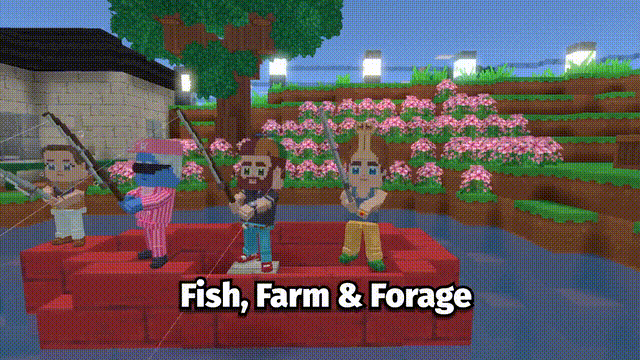 除了做桌子,模型还能游泳,打猎,吃东西。甚至还有「跑跳搭」的骚操作,也就是起跳的时候脚下放个砖块或者木块,跳着跳着就能搭个柱子。这属于是骨灰级玩家的必修课了。