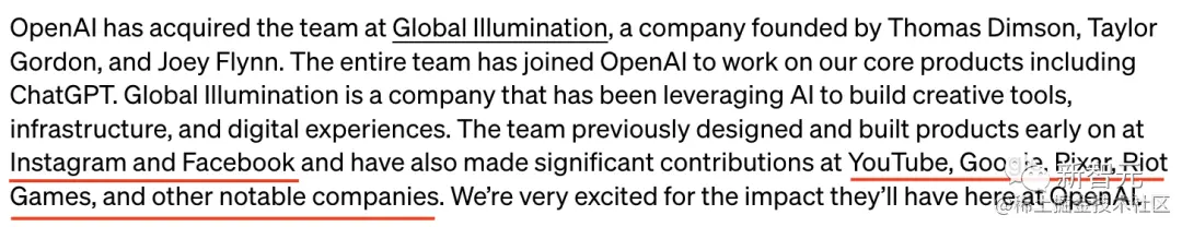 一些网友表示,此举是OpenAI的一次出色的「收购」,通过收购来收揽新人才。在OpenAI公告中,也列出了Global Illumination团队在Instagram、Facebook、YouTube、谷歌、Pixar, Riot Games等著名公司做出贡献。