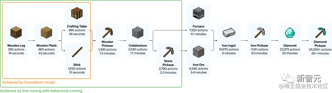 而对于OpenAI来说,其实早在2022年的时候就提出了一种全新的VPT「视频预训练模型」,能够让AI学会了在「我的世界」里从头开始造石镐。