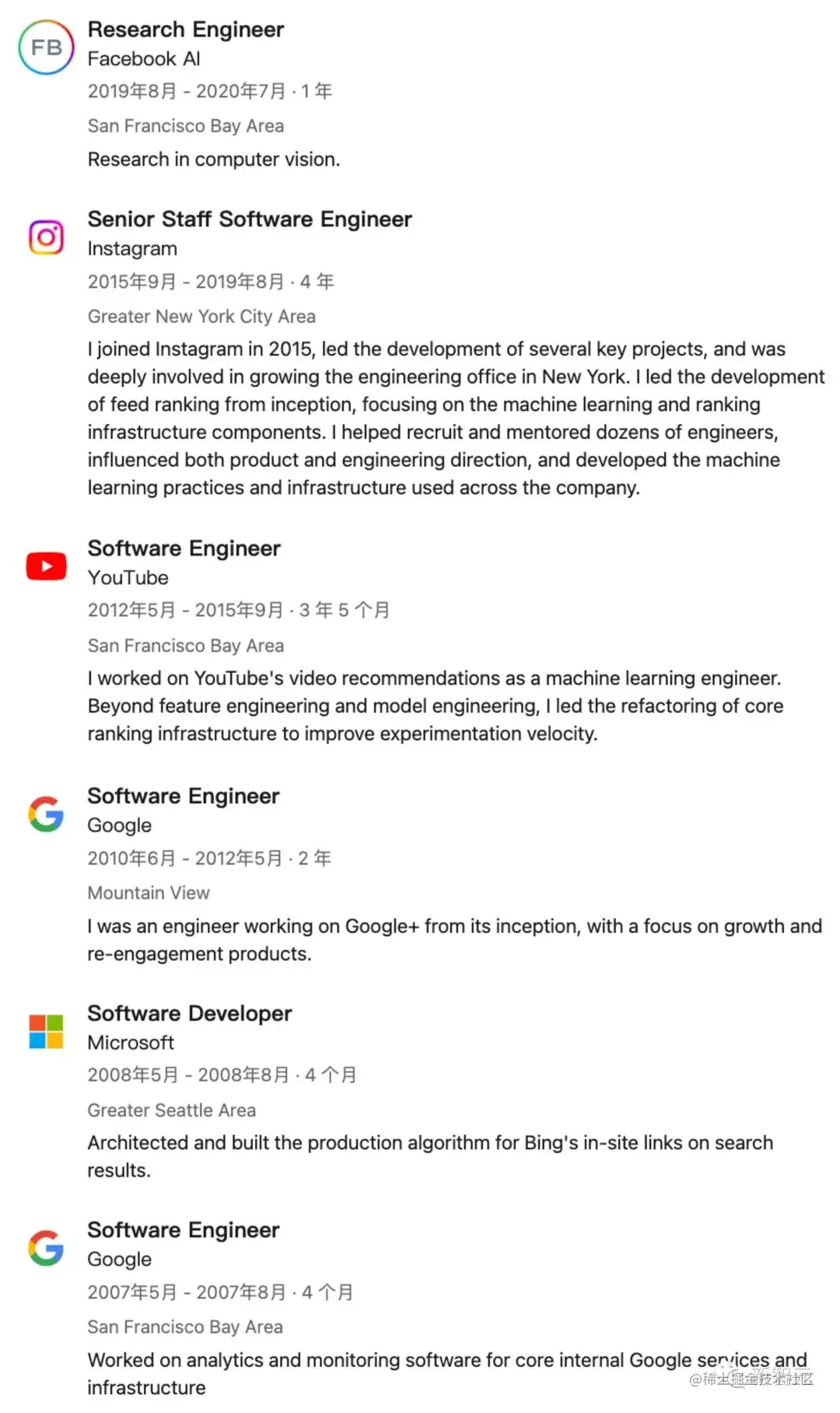Taylor已有20多年的编程经验,并有8年以上的计算机科学教育,在领先的科技公司有10多年的工作经验。他本人丰富经历,遍布许多实验室Facebook AI、Instagram、YouTube、谷歌、微软。2019年,他在Facebook AI主要做计算机视觉研究。同样,他在2015年加入Ins后,就领导了Feed排名的开发,专注于机器学习和基础设施组件的排名。2012年,作为YouTube机器学习工程师,他主要负责视频推荐,领导了核心基础排名设施重构。在微软期间,为必应搜索结果中的站内链接设计并构建了生产算法。在谷歌,负责内部核心服务和基础设施开发分析,以及监控软件。