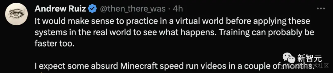 在现实世界中应用这些系统之前,最好先在虚拟世界中进行练习,看看会发生什么。训练的速度可能也会更快。期待几个月后能看到一些「我的世界」加速运行的惊人视频。