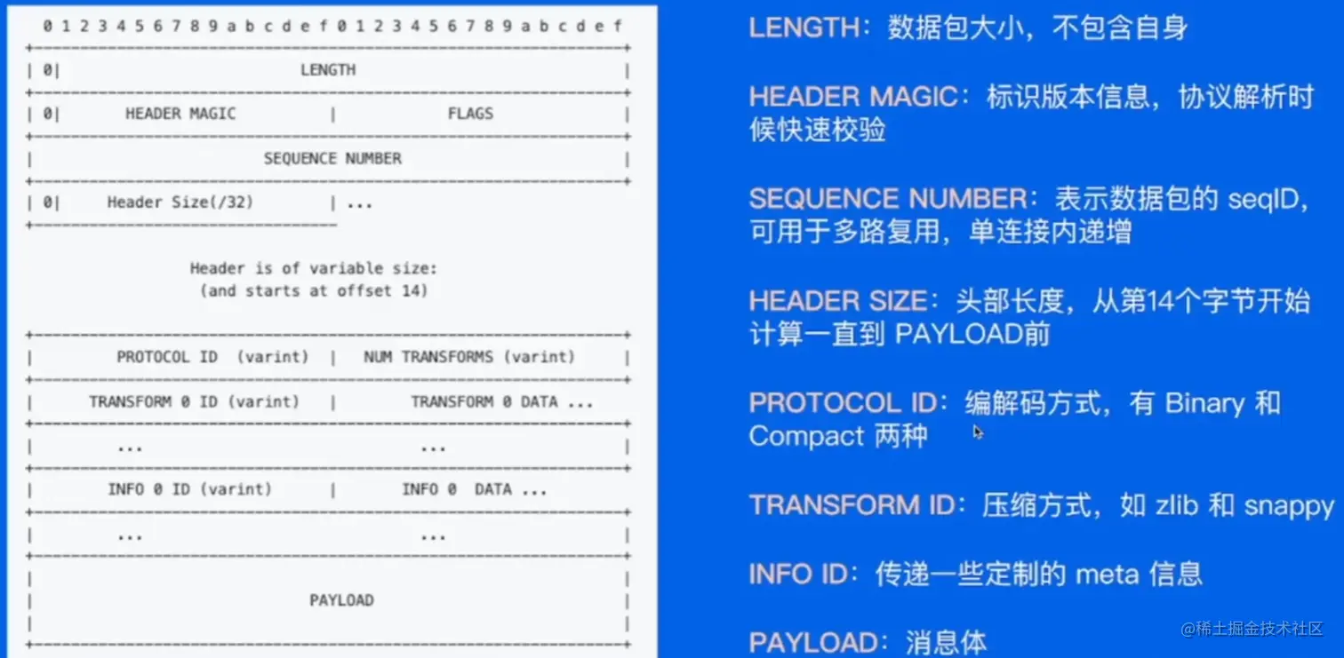 解析时,通过MagicNumber确定协议类别,通过PayloadCodec获取编码格式,再通过解码获取Payload