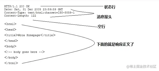 HTTP响应报文也由四个部分组成,分别是:状态行、消息报头、空行和响应正文