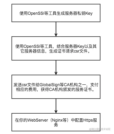 如果一个服务器开发者想使用Https来保护自己的服务和用户数据安全,你可以按照以下流程来操作。