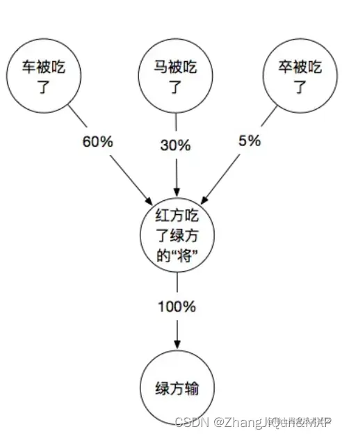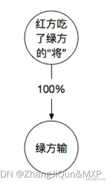 中国象棋里,红方吃掉了绿方的“将”,那么绿方必然输了。用贝叶斯网络来表示就是: