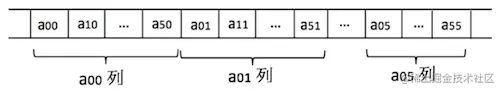而如果采用以列存储的方式,在 anm 中查找 aij 的方式为: