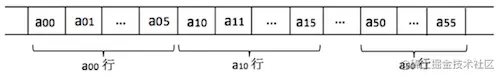 同样,当二维数组 a[6][6] 按照行序为主的次序顺序存储时,数组在内存中的存储状态如图 2 所示: