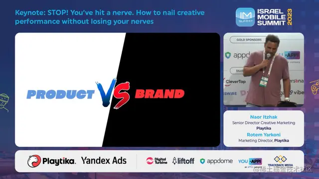 而在如何制作素材上,Playtika也有着自己独特的方法论。在今年6月刚刚结束的Israel Mobile Summit 2023(2023以色列移动营销峰会)上,该公司的市场营销总监Rotem和创意总监Nora就对创意制作做了一个很有意思的分享。在其内部把创意粗略地分成2大类,产品广告和品牌广告。
