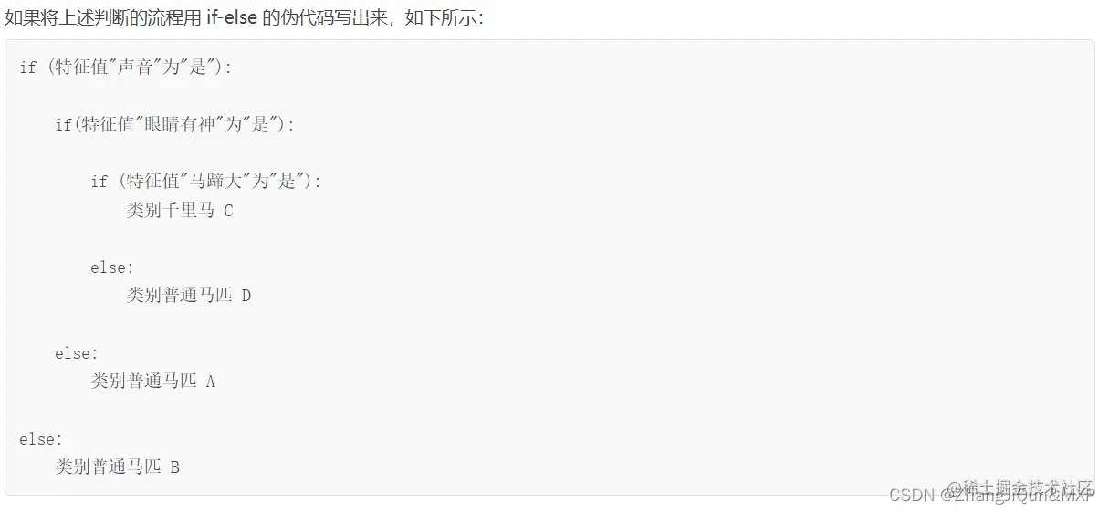 我们知道分类问题的数据集由许多样本构成,而每个样本数据又会有多个特征维度,比如前面例子中马的“声音”,“眼睛”都属于特征维度,在决策算法中这些特征维度属于一个集合,称为“特征维度集”。数据样本的特征维度与最终样本的分类都可能存在着某种关联,因此决策树的判别条件将从特征维度集中产生。