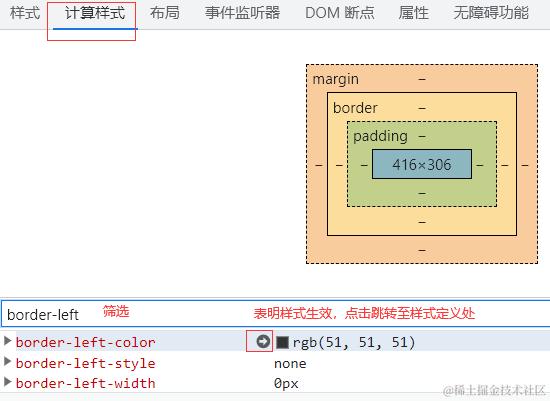 element-conputed(计算样式)中点击样式里的箭头就可以跳转到styles中的css规则。