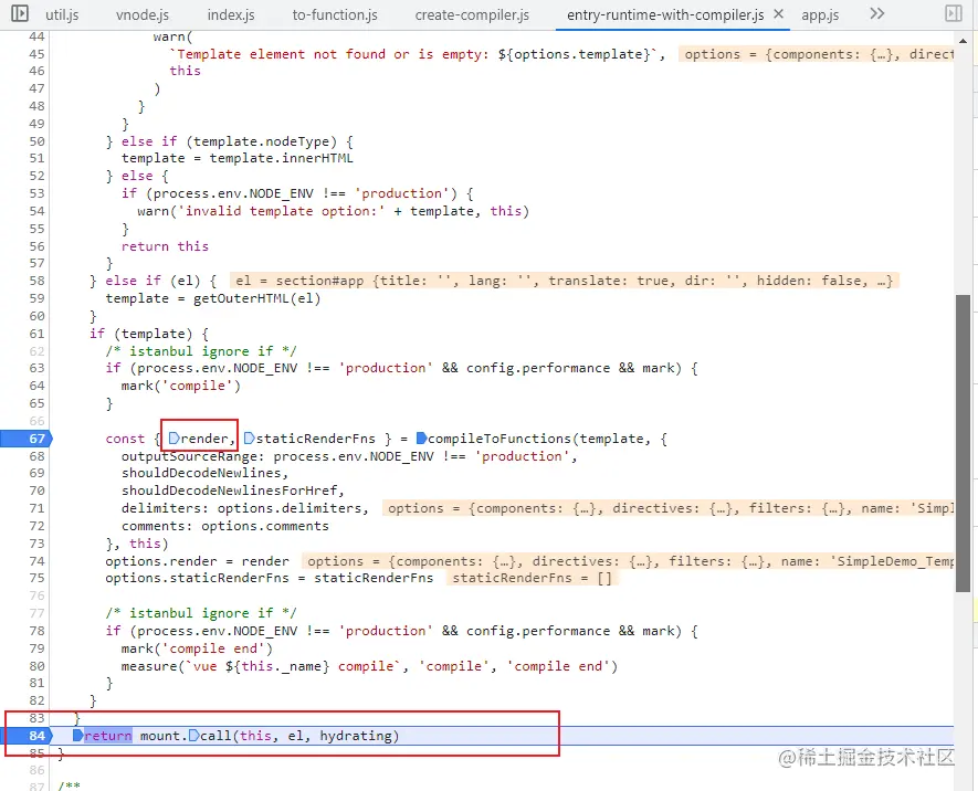 render函数,回到$mount的函数体,继续调用mount函数 - 接下来,本文将继续分析