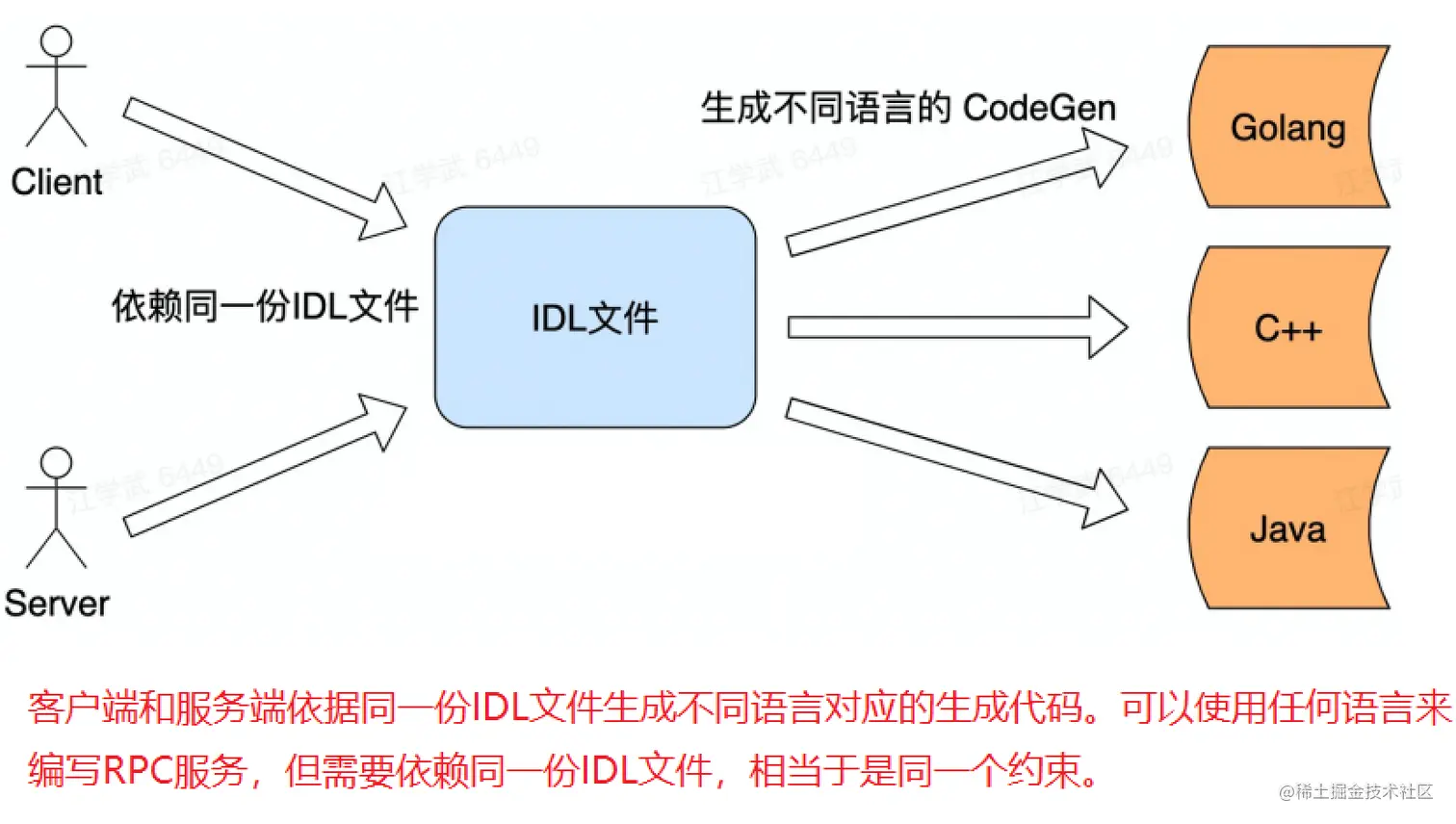 远程函数调用时,调用方是不知道被调用方有哪些方法的,以及参数是什么样的。所以需要有一种方式来声明或者描述被调用方的方法签名。这样,大家就能按照这个约定来调用。