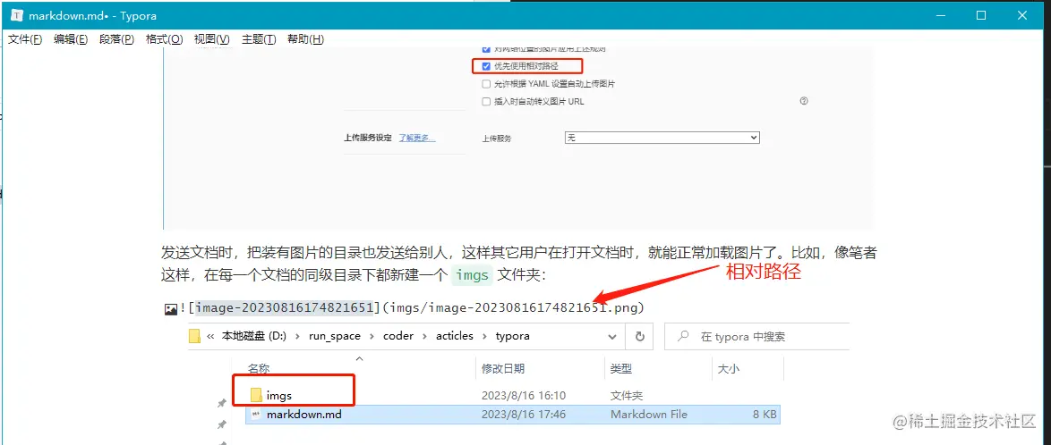 配置:文件 -> 偏好设置 -> 图像 -> 优先使用相对路径