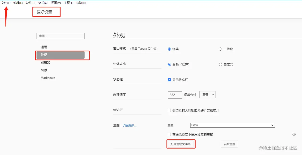 除了 Typora 为我们提供的多种默认主题,我们还可以 DIY 自己的主题风格,Typora 和 HTML 的样式一样,都是用 .css 文件配置的: