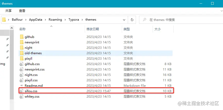 打开我们的主题文件夹,修改目前使用的主题样式,或者从 github.css 复制一个【由于我们的主题风格会模仿 “思否” 网站的样式,所以将复制文件 github - 副本.css 改名为 sifou.css】: