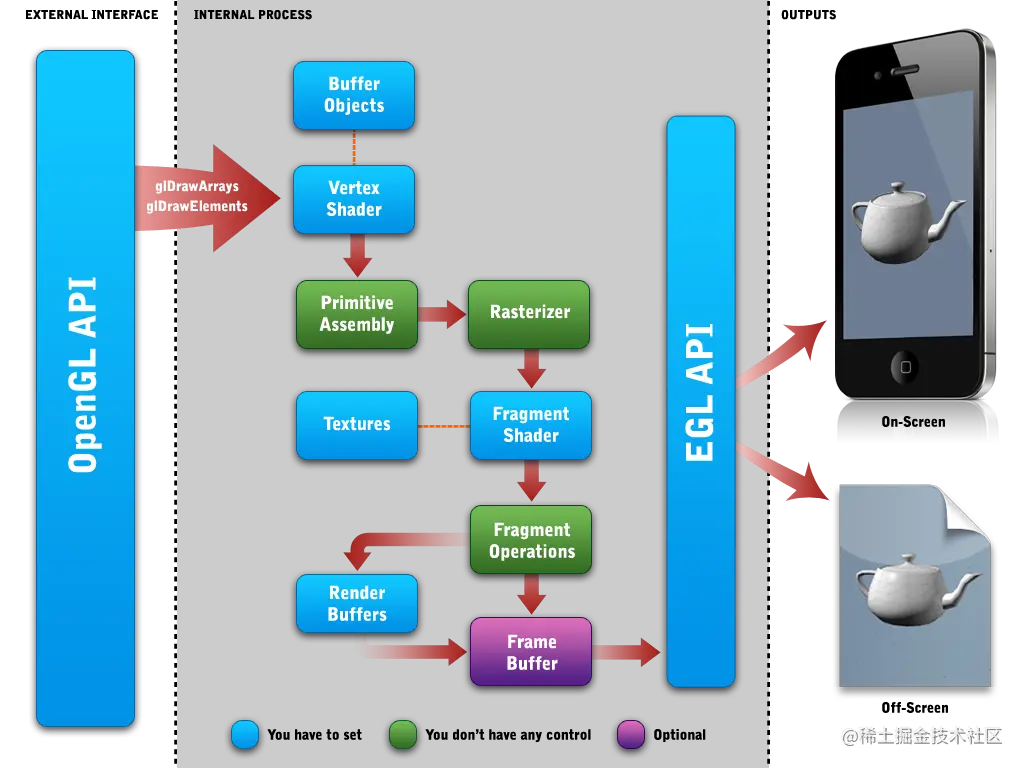 WebGL属于OpenGL的子集,它是基于OpenGL ES标准的,并且与OpenGL ES共享几乎相同的机制和接口。