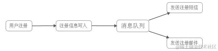 (2)并行处理:新注册信息写入后,由发短信和发邮件并行处理;