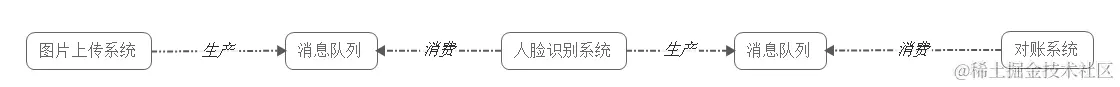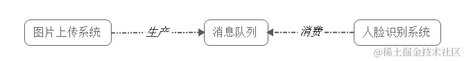 具体场景:用户新上传了一批照片, 人脸识别系统需要对这个用户的所有照片进行聚类,聚类完成后由对账系统重新生成用户的人脸索引(加快查询)。这三个子系统间由消息队列连接起来,前一个阶段的处理结果放入队列中,后一个阶段从队列中获取消息继续处理。
