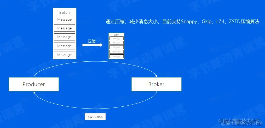 - Producer:批量发送、数据压缩