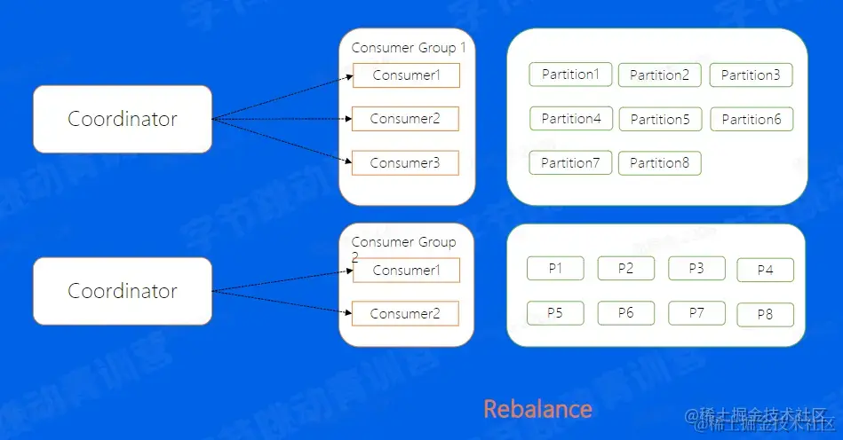 简单的来说,就是在我们的Broker集群中,对于不同的Consumer Group来讲,都会选取一台Broker当做Coordinator,而Coordinator的作用就是帮助Consumer Group进行分片的分配,也叫做分片的rebalance,使用这种方式,如果ConsumerGroup中有发生宕机,或者有新的Consumer加入,整个partition和Consumer都会重新进行分配来达到一个稳定的消费状态