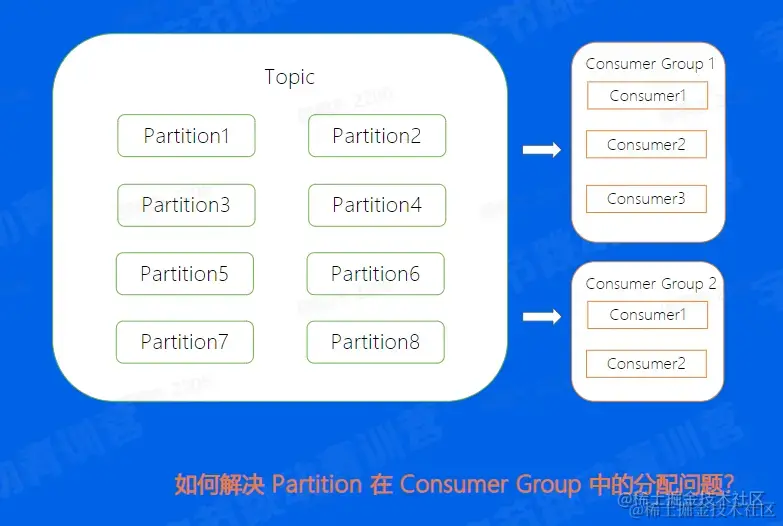 对于一个Consumer Group来说,多个分片可以并发的消费,这样可以大大提高消费的效率,但需要解决的问题是,Consumer和Partition的分配问题,也就是对于每一个Partition来讲,该由哪一个Consumer来消费的问题。