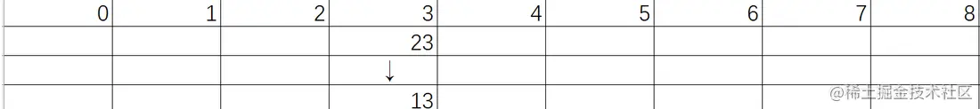 如果再插入数据23的话这里计算的位置依然是3,但是此时3上已经有元素了,所以这时就会使用链表的头插将数据23插入到13的前面,那么这里的图片就是下面这样: