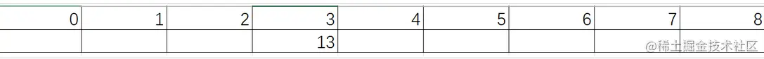当我们想要插入一个数据13时就会先计算13对应在哈希表上的位置,根据之前的计算原则这里得到的位置就是3,所以图片就变成了下面这样: