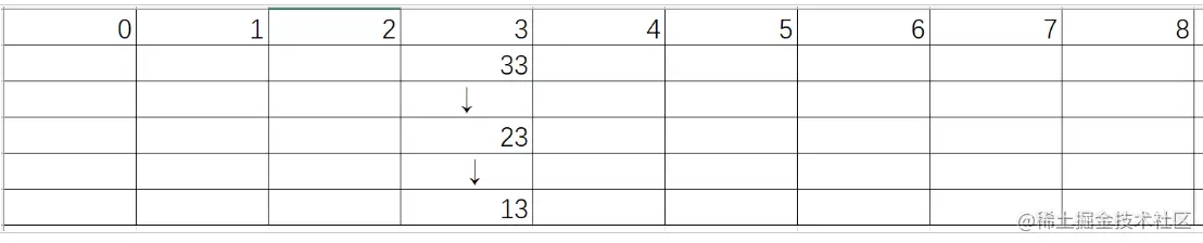 当插入的数据为33时计算的位置为3,可是位置3已经被占领了并且4也被占领了,但是位置5没有被占领所以插入数据33就会占领位置5,那么这里的图片就如下: