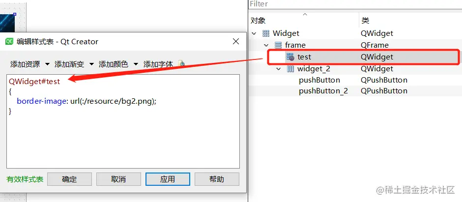 特别提醒:类名 # 控件名,其中控件名要准确,假如你把widget的名字改成了其他,那么这里的控件名要一致。