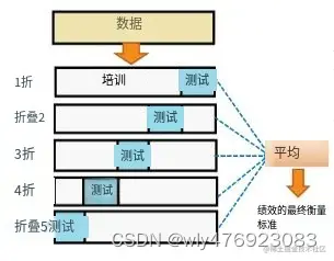 在该方法中,数据集被随机划分为k个互斥的 子集,每个子集的大小相同。其中,一个用于测试,其他用于训练模型。所有 k 次折叠都会发生相同的过程。
