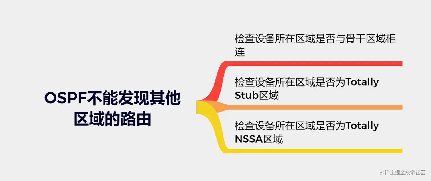 在链路正常的情况下,OSPF不能发现其他区域的路由。当我们尝试从一个区域访问另一个区域时,发现无法建立通信。这可能是由于以下原因导致的故障现象: