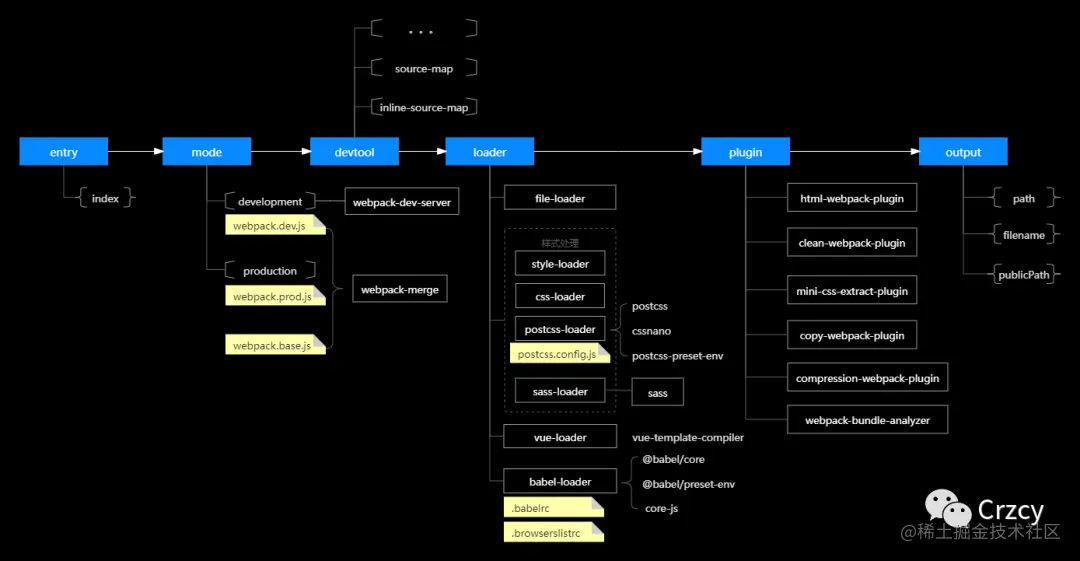 本文将通过介绍webpack的核心模块,让开发人员具备搭建脚手架的底层基础能力,并能快速上手。首先通过一张图看懂webpack的构建流程以及需要具备的核心知识点。