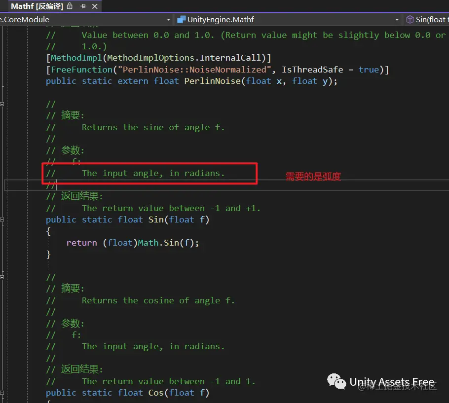 在我们日常生活中会用角度来表示一个角的大小,但是在Unity里面的Mathf里面的三角函数都是用弧度表示的。刚开始学的时候挺懵,所以做个记录。