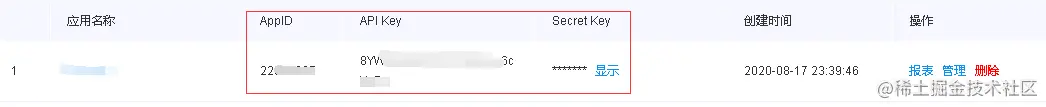 选择创建应用,然后填写一下描述即可。然后你会得到一个app id如下图: