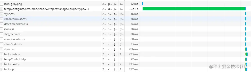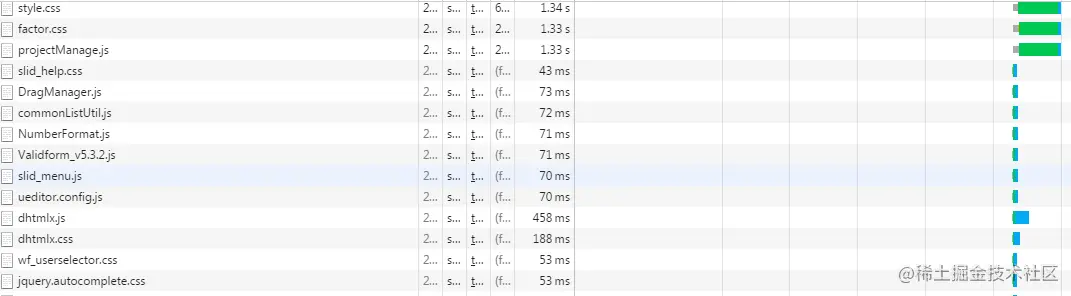 从图1可以看到这个应用的所有css和js都没有没有合并压缩,我算了一下,总共引入了50个css和js,咱们再开看看图2: