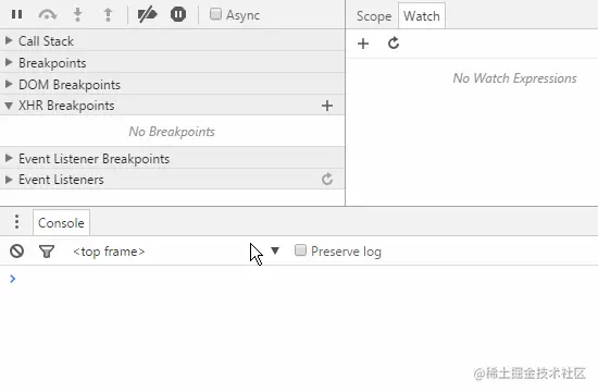 XHR断点的强大之处是可以自定义断点规则,这就意味着我们可以针对某一批、某一个,乃至所有异步请求进行断点设置,非常强大。但是,似乎这个功能在日常开发中用得并不多,至少我用得不多。想想原因大概有两点:其一,这类型的断点调试需求在日常业务中本身涉及不多;其二,现阶段的前端开发大多基于JS框架进行,最基本的jQuery也已经对Ajax进行了良好封装,极少有人自己封装Ajax方法,而项目为了减少代码体积,通常选择压缩后的代码库,使得XHR断点跟踪相对不那么容易了。