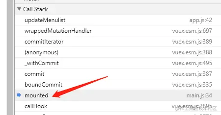 我们可以很明显的查看函数第一次是在main.js的34行调用的。