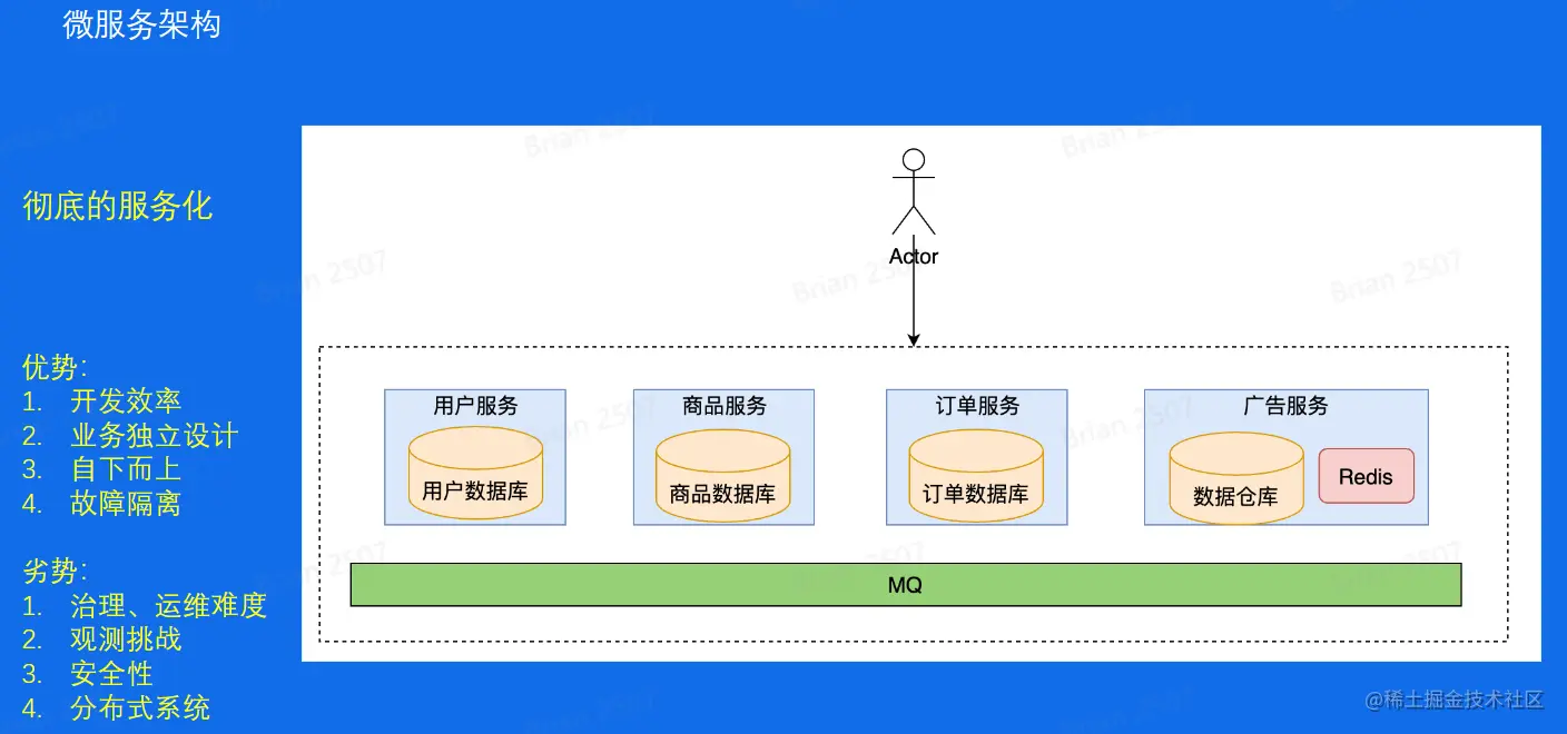 微服务中还有许多内容需要更详细的了解,比如Redis,MQ, Docker等一系列中间件。微服务架构适用于大型应用程序和复杂业务场景,因为它可以提高开发效率、可维护性强和扩展性强等一系列优点。但是,微服务架构也有一些挑战,比如,微服务架构将应用程序拆分为多个独立的微服务,每个微服务都需要进行单独的部署、监控和管理。这增加了系统的复杂性和管理的难度,可能需要更多的开发人员和运维人员来维护和管理整个系统。微服务通常都有自己的数据库,这也使得在进行数据一致性和事务管理时变得更加困难。因此,在采用微服务架构之前,需要仔细考虑其优缺点。