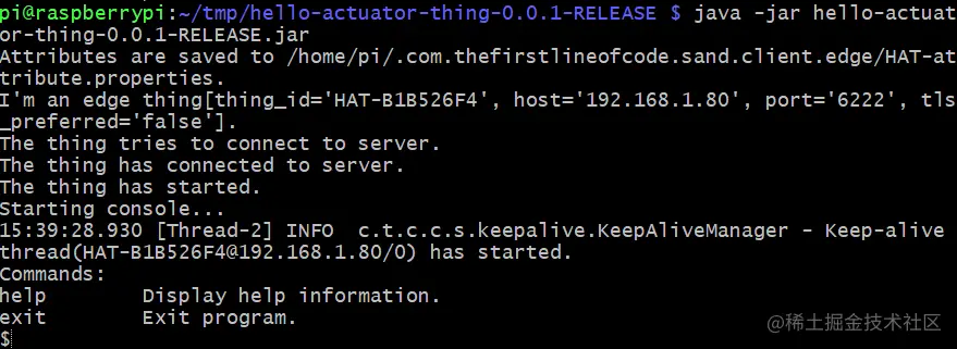 - 很简单直白的代码,重要的是调用HelloActuatorThing的start()方法,将Edge Thing启动起来。