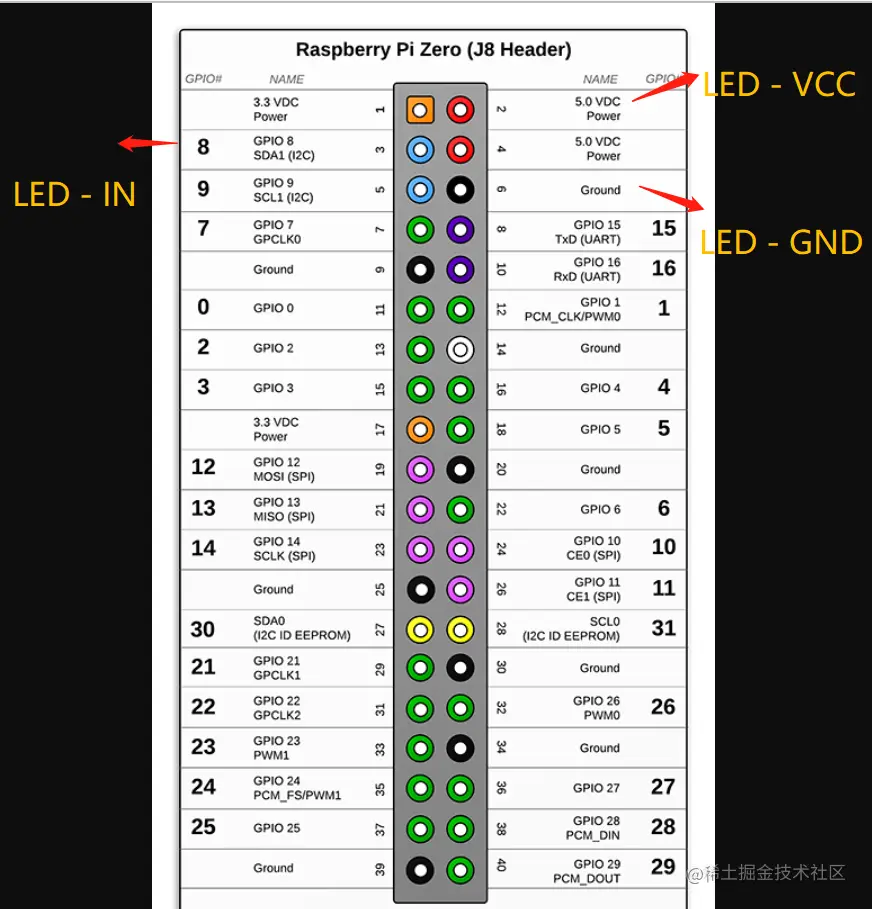 我们将LED的VCC接口,接在GPIO的5V Powerd引脚上。