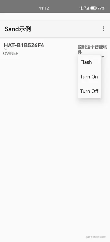 登录后,可以看到注册成功后hello-actuator-thing。点击“控制这个智能物件”,会看到下拉菜单里,有Flash,Turn On,Turn Off三个子菜单。