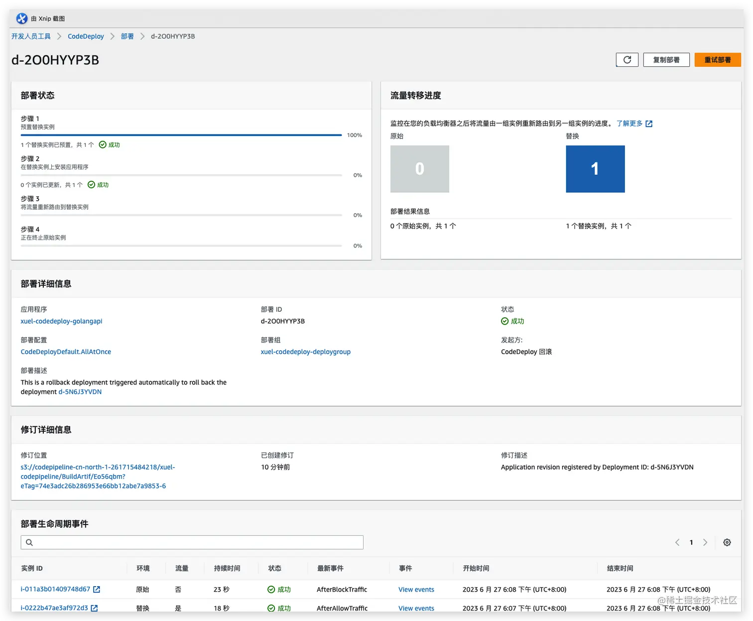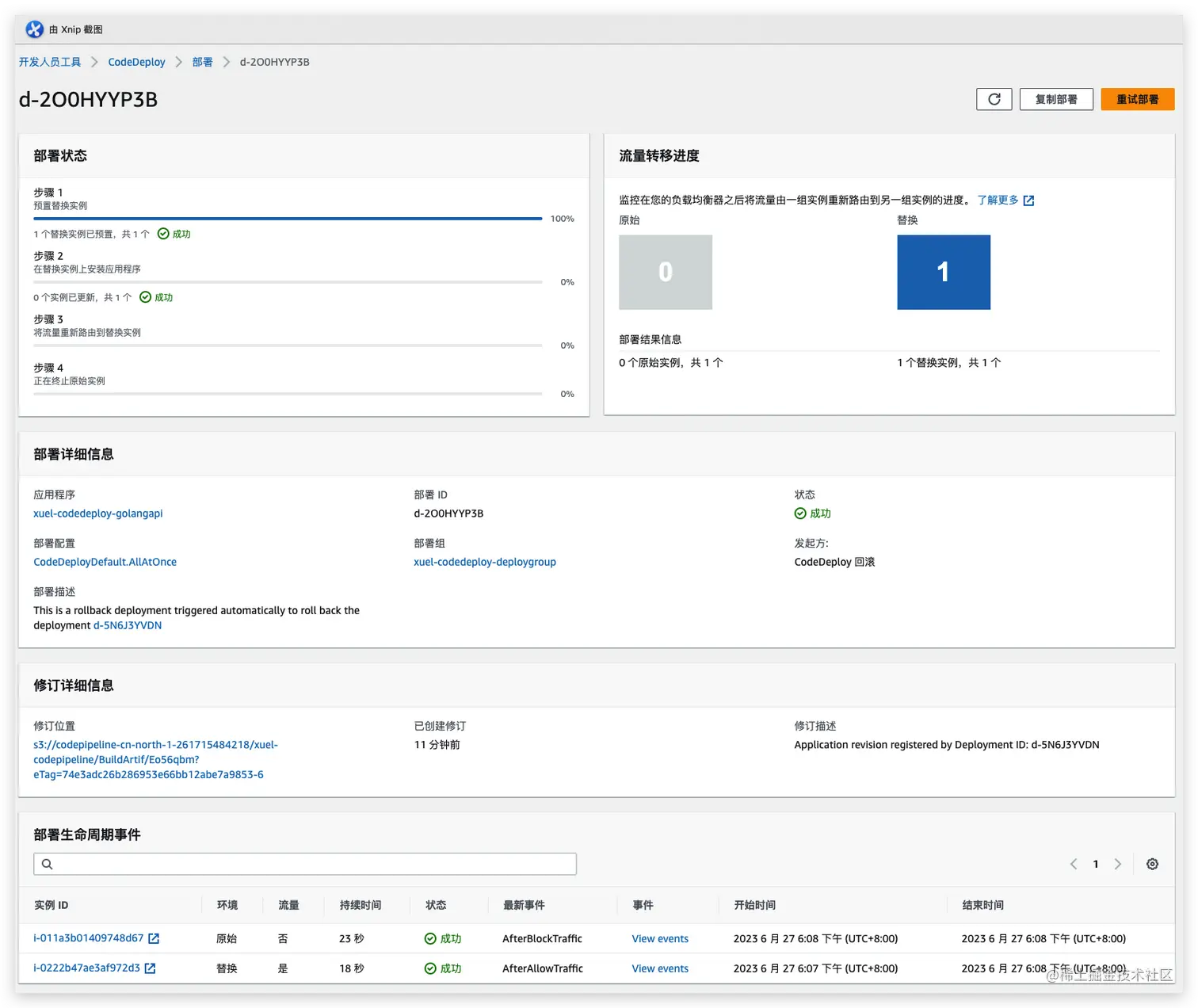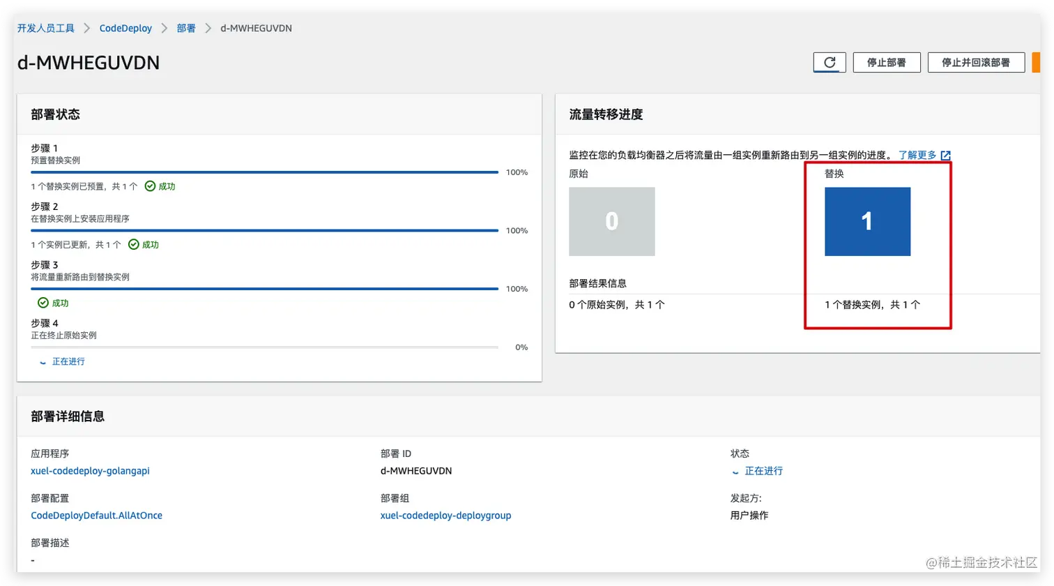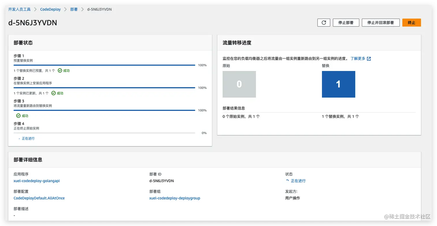 已完成新版本发布,在此测试停止并回滚部署。