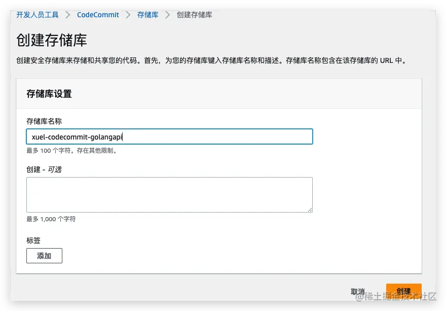 5.2.1 创建codecommit仓库