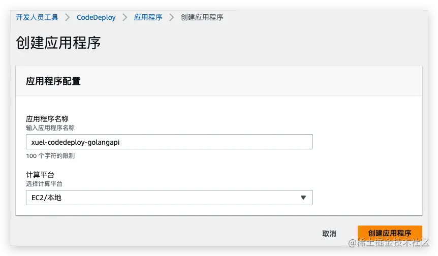 - 创建应用程序,标识部署应用程序版本及计算平台。