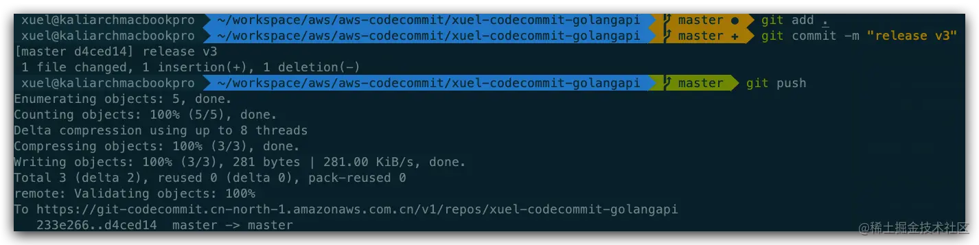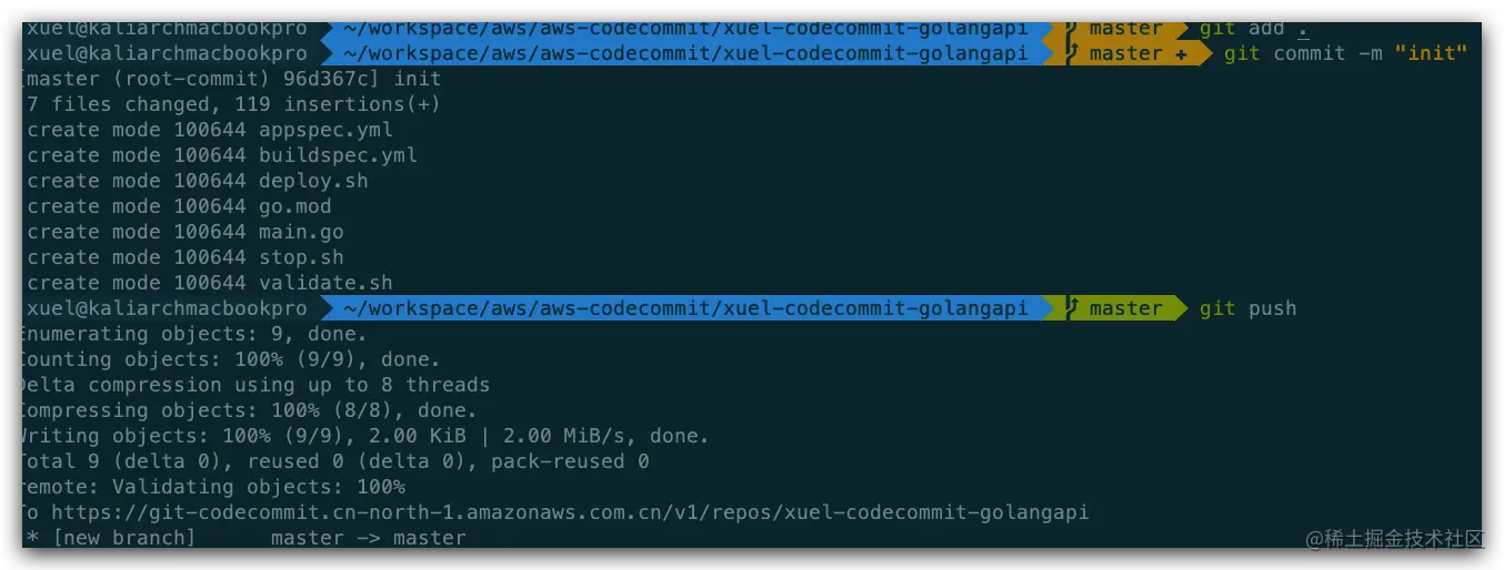 - 提交代码到codeCommit中