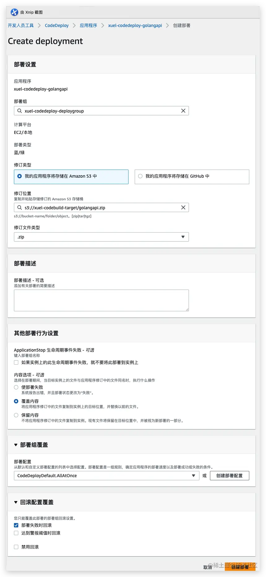 - 部署策略: 使用CodeDeploy选择合适的部署策略(如蓝绿部署、金丝雀发布等),以便在生产环境中实现零停机时间和快速回滚。