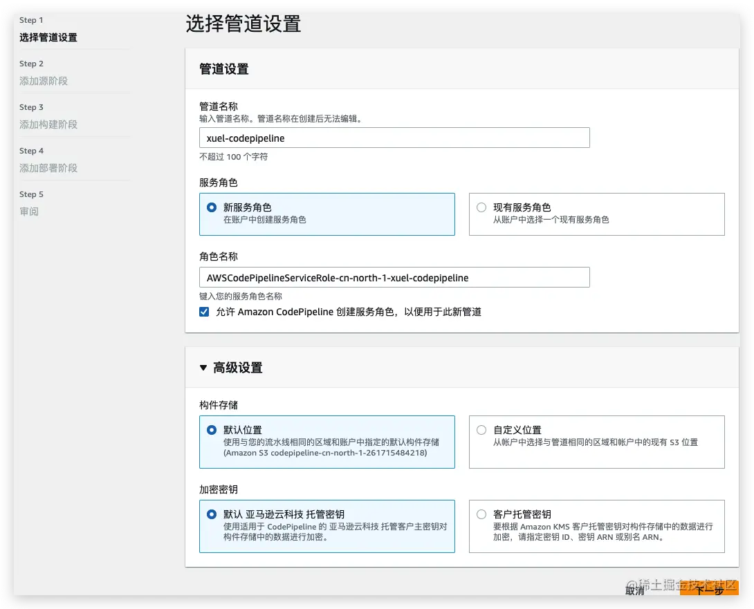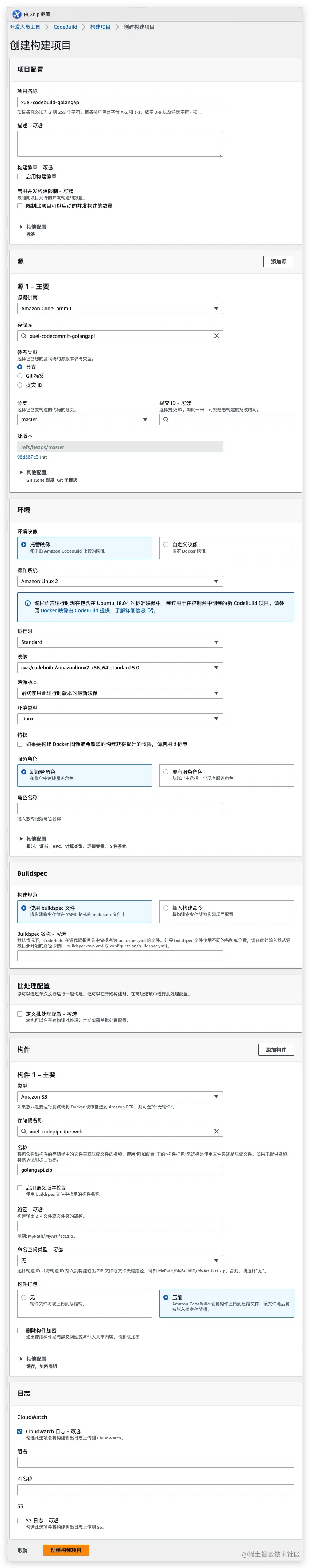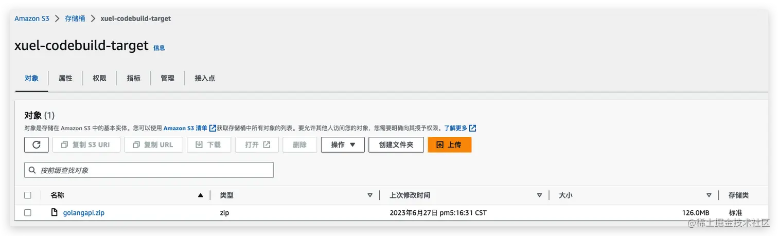 提前创建好存储golang 构件的S3,创建用具备codebuild权限的IAM角色