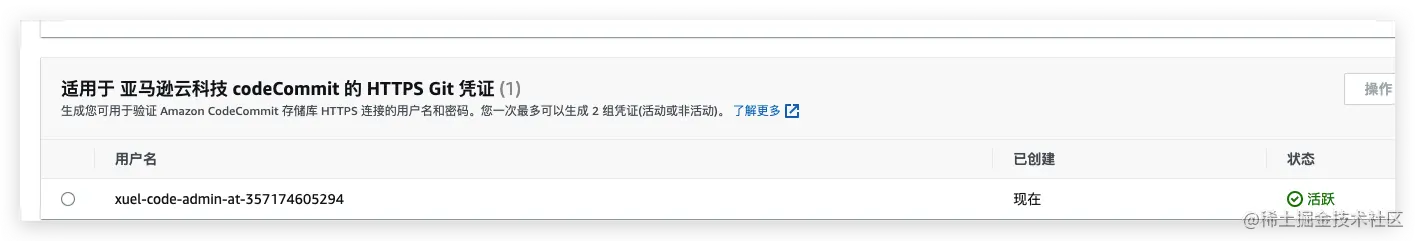 - 为用户生成codeCommit凭证