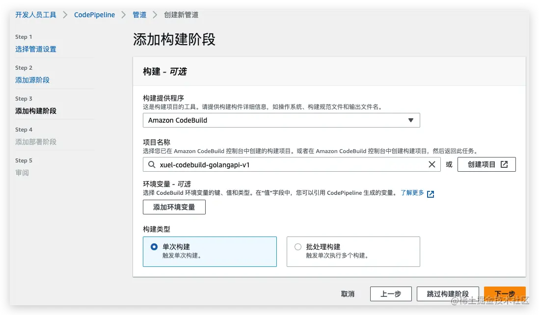 添加构建阶段