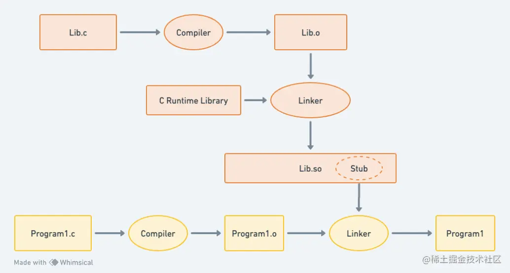 gcc -o Program1 Program1.c ./Lib.so // 编译链接生成 Program1